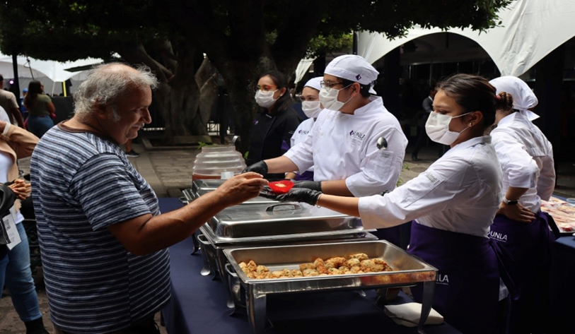 La Licenciatura en Gastronomía se sumó como orgullosa participante de la 4ª Feria Internacional del Libro y la Lectura de Morelia, que se celebra del 26 de septiembre al 5 de octubre en el Centro Histórico de la ciudad, consolidándose como un espacio de encuentro cultural y literario. Estudiantes de primer, cuarto y séptimo cuatrimestre presentaron una demostración culinaria con bocadillos típicos de Portugal, seleccionados por su cercanía en sabor y técnica con la cocina mexicana. Los platillos preparados fueron: Pasteis de Belém – postre de masa hojaldre relleno de natilla horneada, Pasteis de bacalao – croquetas de papa russet con bacalao, cebolla y perejil, Queques de naranja y limón – bizcochos tradicionales semejantes a las mantecadas mexicanas. Paté de sardina con queso crema – acompañado de tapas de pan artesanal. Para maridar, se ofrecieron bebidas refrescantes como té negro con naranja y agua de menta con limón. Cada preparación no solo destacó la técnica y disciplina de las y los estudiantes, sino también su capacidad para crear experiencias gastronómicas con identidad cultural. La participación de la UNLA en la Feria Internacional del Libro y la Lectura de Morelia, refleja la excelencia académica de su programa de Gastronomía, el cual combina formación práctica, dominio de técnicas internacionales y experiencias reales en escenarios de alto nivel. Con estas actividades, la universidad reafirma su compromiso con la filosofía institucional de “formar profesionistas comprometidos con su entorno, capaces de contribuir con el bienestar de la sociedad”, al mismo tiempo que impulsa el talento joven hacia escenarios globales.