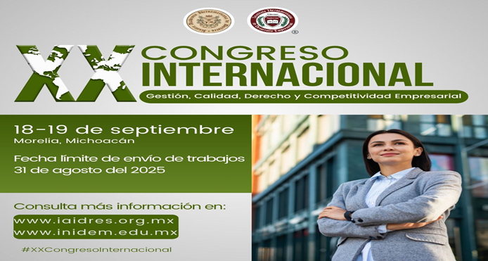 Se afinan detalles en la organización de la vigésima edición del prestigiado Congreso Internacional en Gestión, Calidad, Derecho y Competitividad Empresarial. El comité organizador liderado por los Doctores Federico González Santoyo y Beatriz Flores Romero han anunciado que se encuentra abierto el proceso de recepción y registro de los trabajos que aspiran a ser incluidos y presentados, el nuevo plazo fenece el día 05 de septiembre. Mayores informes en www.iaidres.or.mx , www.inidem.edu.mx #XXCongresoInternacional.